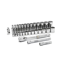 80509 1/4 in, 80510D 5/16 in, 80511 3/8 in, 80512 7/16 in, 80513 1/2 in, 80514 9/16 in, 80515D 5/8 in, 80516 11/16 in, 80517 3/4 in, 80518 13/16 in, 80519 7/8 in, 80594 15/16 in, 80595 1 in Deep Sockets, 80496 1/4 in, 80497D 5/16 in, 80498 3/8 in, 80499 7/16 in, 80500D 1/2 in, 80501 9/16 in, 80502 5/8 in, 80503 11/16 in, 80504 3/4 in, 80505 13/16 in, 80506D 7/8 in, 80507 15/16 in, 80508 1 in Standard Sockets, 81241 3 in, 81242 6 in Extensions, 80549 Universal Joint, 81211F 8-1/4 in 84-Tooth Teardrop Ratchet and Storage Blow Molded Case