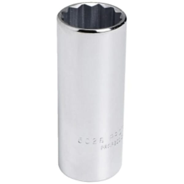 Proto TorquePlus Socket, Deep Length, No Impact Rated, Measurement System: Imperial, Square Drive, 3/8 in Drive, 1 in Socket, 2-3/4 in Overall Length, 1-3/16 in Opening Depth, 1-5/16 in Drive End Width, 1-5/16 in Socket End Width, Ball Locking, 12 Points, 2-5/16 in Bolt Clearance Depth, Alloy Steel, Full Polished